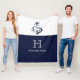 Monogrammad marinblå fästpunkt vid kusten fleecefilt
