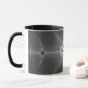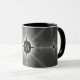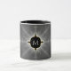 Den här monogrammade kombinationen mugg har en abstrakt frakttal konst i mörk grått och svart färg.