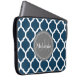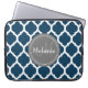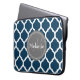 Monogrammad Navy Blue & Grått Quatrefoil Laptop Sleeve