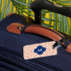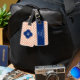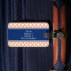 Monogrammad Orange och Royal Blue Quatrefoil Bagagebricka