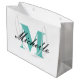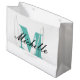 Monogrammad presentväska med finare-skripttypografi. Elegant stora presentpåsar för chic presenter och party favors. Lyxmallens utformning med tealblått och svart färg på vit bakgrund. Underbar för födelsedag, Helgdagar, bröllop och mycket mer. Anpassa med din egen namn. Stora och små storlekar är tillgängliga.