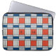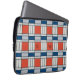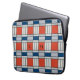 Laptop sleeve har ett retrogeometriskt mönster i rött, blått och lätt grått. Anpassa den med dina monogram i svart.
