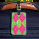 Monogrammad Rosa & Grönt Argyle Bagagebricka