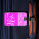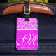 Monogrammad rosa Script BW-fyrkantscirkel Bagagebricka