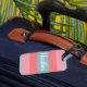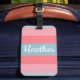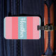 Rosa-bagagetapp med monogrammerad stripe. Anpassa märkrn med ditt namn eller första namn. Teckensnittet stil och färg kan anpassas till ditt eget stil.