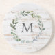 Monogrammad Rustic Grönt Sage Löv andedräkt Underlägg
