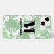 Den här designen har ett enkelt monogrammt monogram, ett botaniskt handflatan lämnar träd, en anpassningsbar personlig brev, en vattenfärgsgrön löv, en namn tropisk strand snyggt trendig, en iPhone smartphone-tillbehör sol, en fodral sofistikerad söt modern, en djungel botanisk contemporary löv, en mönster formgivning för elegans förenklad, en stav Skyddstelefonhölje för urdy