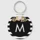 Monogrammad svart, stripe-Blommigt Nyckelring