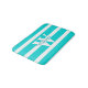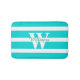 Snyggtens badmatt, som utförs i ett lätt teal, fetstilt stripe mönster. En anpassningsbar stor vit ett brev monogram, mitten i mattan, och tealtext, är redo att anpassa sig själv eller som en underbar presentidé. Kommer i tre storlekar.