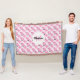 Monogrammed Kids Rosa Gris Mönster Animal Throw Blanket. Vackert lilla pigg mönster av söt rosa grisar i vita cirklar på rosa. Cute farmyard-djurets bakgrund är vit med namn och den första monogrammen i svart och rosa. för barn, interpoleringar och tonåringar för Roligt av barnyarddjur i gris.