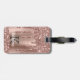Modern, gigantisk ro guld glitter droppar namn och bagagetaggen med monogrammatiskt bagage. Den här designen har gnistror i rosa ros glitter på rosa borstad metall med anpassningsbar guld monogram initial och första personlig-textmall. Perfekt kvinnlig gåva. Observera att den här designen är en utskriven fotoeffekt. Kontakta mig om du behöver hjälp eller matchande artiklar.