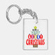 Julgran formtypografi med 3D-gultens stjärna överst. Anpassa brunt träd-segment med innevarande år. Baksidan är röd med Monogrammed inledande typsnitt i vitt hytt. Ha ett mycket God jul skrivet i svart, grönt, vitt, rött roligt typsnitt. Merry är skrivet inuti rött, rosa, guld, blå dekorationer. Originalteckningsutkast © TamiraZDesigner