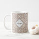 Geometric monogrammed mugg för att anpassa sig till namn efter ditt val på en diamantrutt mönster med hjälp av vår Cafe Ombré dot mandala i vår Warm Neutralt färg palett. Perfektens gåva eller för att ge ditt liv något klassiskt elegans.