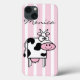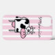 En söt, gigantisk design med en leende ko mot en bred, randig bakgrund i rosa och vitt. Redo att anpassa med ditt namn eller monogram.