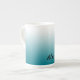 Monogrammat blått och vitt blend-frostat glas benporslin mugg