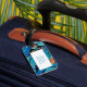 En bagagetapp i snyggten har en mönster av tropiska fåglar av paradisblommor och chicens första monogram på framsidan och dina adress-uppgifter på baksidan ELLER välj stil som du kan infoga affärskortet på baksidan. Skapa dig själv eller ge som gåva. MATCHING-dragsträngssäck och fler artiklar i vår resesamling.