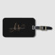 Modern Black Guld Feminine Script Monogrammed Luggage Tag. Anpassa enkelt den här moderna elegantens bagagemärke med anpassningsbarnas monogram och namn.