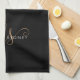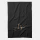 Modern Black Guld Feminine Script Monogrammed kökshandduk. Anpassa enkelt den här elegantens kökshandduk med ditt anpassningsbar monogram och namn.