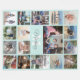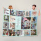 Monogrammat Photo Collage Teal Blue & Grått Script Fleecefilt