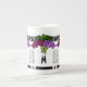 Den eleganta monogrammed benporslinmuggen som smyckades med en sofistikerad original- art déco, inspirerade designen, som sammanslutningar görar slät gränser av svarten & silver, den vividly färgade druvan samla i en klunga i cerise, violett & grönt & ett beställnings- textfält för din monogram. Delen av serie för HoMeArts "art décodruvor" av disk, bordslinnar, kudder & mer.