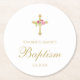 Monogrammed blommigt för rosa ros för dopguldkor underlägg papper rund
