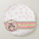 Monogrammed Cute Kitten Blommigt Rosa Star Rund Kudde