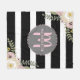 En ullfilt som presenterar ditt namn, och monogramen i rosa insidagrått på grå sparre cirklar skisserat med rosor pricker. Bakgrund är den svartvita randdesignen med blom- design på den bästa vänstra och nedersta höger.