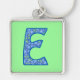 Monogrammed E Blue-Blommönster Fyrkantig Silverfärgad Nyckelring