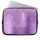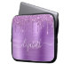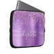 Monogrammad chic och laptop sleeve med lila faux glitter drops på lila faux borstad metallbakgrund. Anpassa med ditt namn i ett vitt skript för trendiget snyggt med dekortecken.