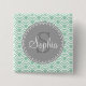 Trendig, modern, giftig, mynt grönt och vit geometrisk cirkel vågformar mönster med en ursprunglig märkmall för brev och personlig namn i grått och vitt.