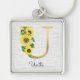 Monogrammed Guld Solros Blommigt Initial U Fyrkantig Silverfärgad Nyckelring