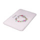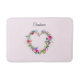 Pink bathmat with a heart shaped floral wreath. Matching towels also available.