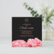 Blom- Monograminbjudningskort för möhippan med det rosa nejlikafotoet.