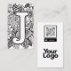 Monogrammed J Black and White Blommigt QR Code Log Visitkort