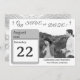Utformningen innehåller initialerna för den brud och triom som visas länkad tillsammans överst till lämnat. Rubriken "Spara datum!" visas i mitten. Bilden av kor visas på båda sidor. Till designens lämnat datum i bröllop visas tydligt på bilden av en daglig kalender. Bilden visas på höger av kalender, namn av par, stad och tillstånd i bröllop visas nedan. Baksidan har en fin bakgrund med faux-satin med parets nya efternamn som till stor del visas i mitten. Texten på framsidan finns i ett vackert silver-teckensnitt. Mycket elegant.