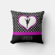 Personifierad Cheerleading dekorativ kudde -- svartvita polkadots, med en hjärta och en hejaklacksledare i centrera. Tillfoga ditt namn!