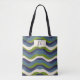Monogrammad | Vågigt Retro Rand Tote Bag är snyggt och roligt. Den här designen kan vara personlig med initialer.