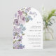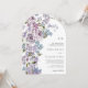 Gör ett tidlöst första intryck med den här vackert designade, skiftformade bröllopsinbjudan, med ett förfinat monogram som är inramat av delikat, handmålat vattenfärgslilacs i mjuk lavender, lila och blått, kompletterat med lush grey. Den unika bågformen tillför en modern men sofistikerad beröring, medan blommigtens utformning framkallar romantik och elegans. Anpassadet är helt och hållet att du kan anpassa ordalydelsen, justera stilar och storlekar för teckensnitt och ändra bakgrunden så att den passar bröllop-temat perfekt. Denna fantastiska inbjudan är ett steg mot ett oförglömligt firande fyllt av skönhet och charm.