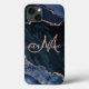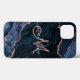 Det här monogrammade telefonhöljet har en elegant modernt skriptmonogram med marinblått och ro guld agate geode design. Anpassa den med ditt namn och monogram.