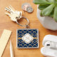 Monogrammed marockanska safirblått och guld fyrkantig silverfärgad nyckelring