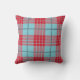 Monogrammed modern röd turkosplädkontroll kudde