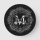 Monogrammed Namn Boho Mandala Black Silver Rund Klocka