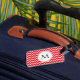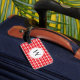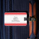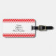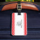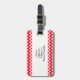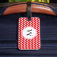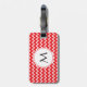 Röd och vit chevron mönster med bagagetagg i monogram. Röd och vit zigzag linjer.