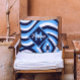 Monogrammed retro 70-talets marinblå Teal psychede Kudde