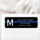 Perfekten för tillsatta lagar är att välja mellan denna lilla returadressetikett med en monogrammad inledande adress. Designen har en tunn blå linje på en svart bakgrund med din monogrammade inledning på den lämnat i vit typografi och ditt namn/adress på högerna så att du kan anpassa dig.