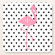 En gåva som presenterar en illustration av en rosa flamingosilhouette. Personifiera med din monograminsida cirklar på flamingos förkroppsligar. Bakgrund är vit med liten svart polka dots.