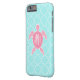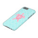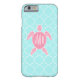 Monogrammed rosa havssköldpadda + Blått Quatrefoil Case-Mate iPhone Skal