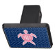 En gåva som presenterar en illustration av en rosa havssköldpadda. Personifiera med din monogram på sköldpadda snäcka. Bakgrund är det marinblåa quatrefoilmönster.