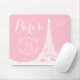 Denna chic rosa mus vadderar särdrag som ett vitEiffel torn som är grafiskt med "Paris" som är skriftlig i modernt, skrivar. En monogram som är initial för att dig ska personifiera, inramas av en vitfinarerulla.