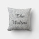 Den här silvret dekorativ kudde har en glatt faux-avsluta och ditt monogram eller namn i familjen är skrivet i ett finare-skript. Inga glitter eller sekvenser används i skapar av denna kudde, så du har allt glam och kudden är fortfarande mjuk vid beröringen.